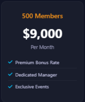 500 eller fler aktiva downlines min. 100$→→ Månadslön 9 000 USD